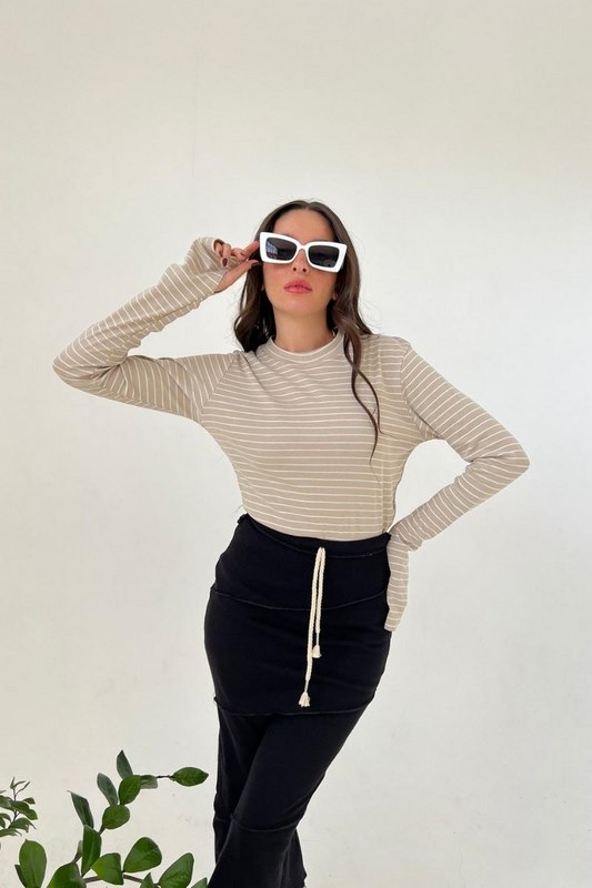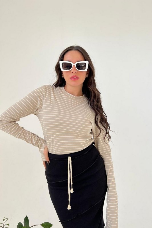 חולצת בייסיק כפפה פסים בז’