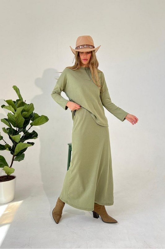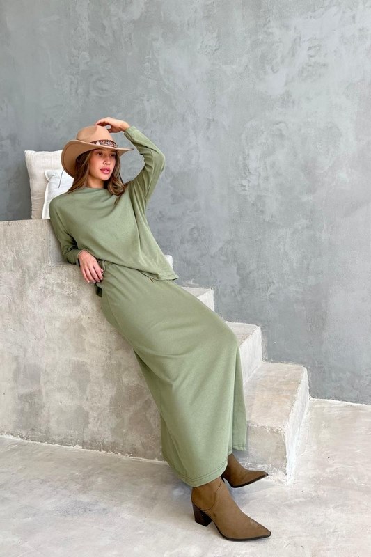 חליפה מהממת בד טריקו חצאית מקסי עם גומי בחצאית מידת הדוגמנית 1.