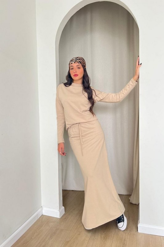 חליפה מבד טריקו עבה בד מושלם עם גומי בחצאית