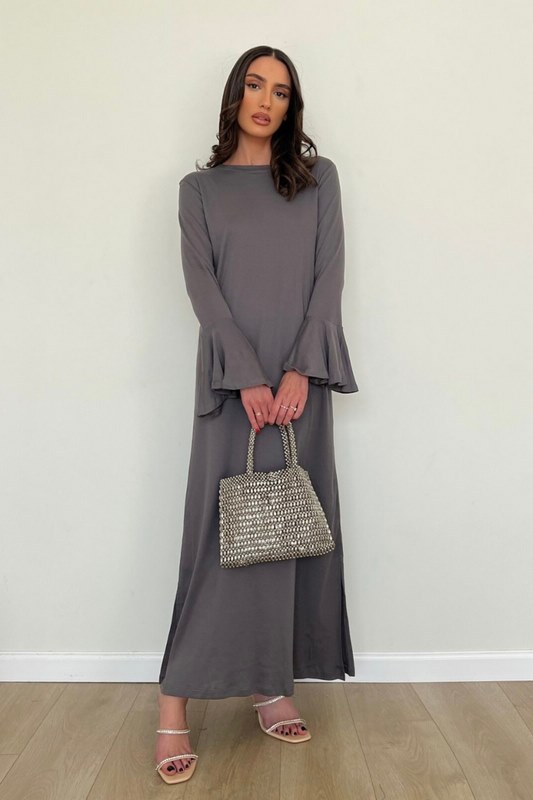 דף הבית  / מוצרים / New collection / שמלת דגם מורי אפור