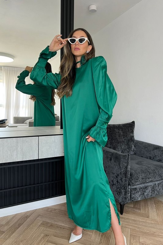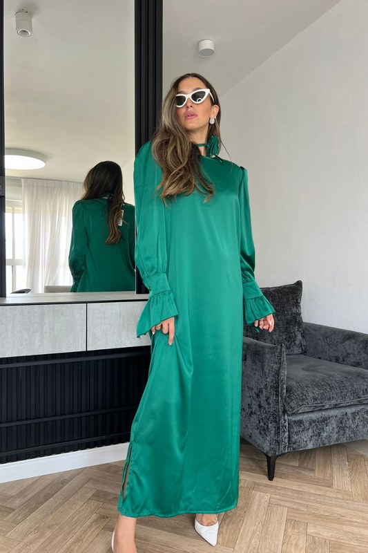 דף הבית  / מוצרים / New collection / שמלת מקסי סאטן דגם ארין ירוק