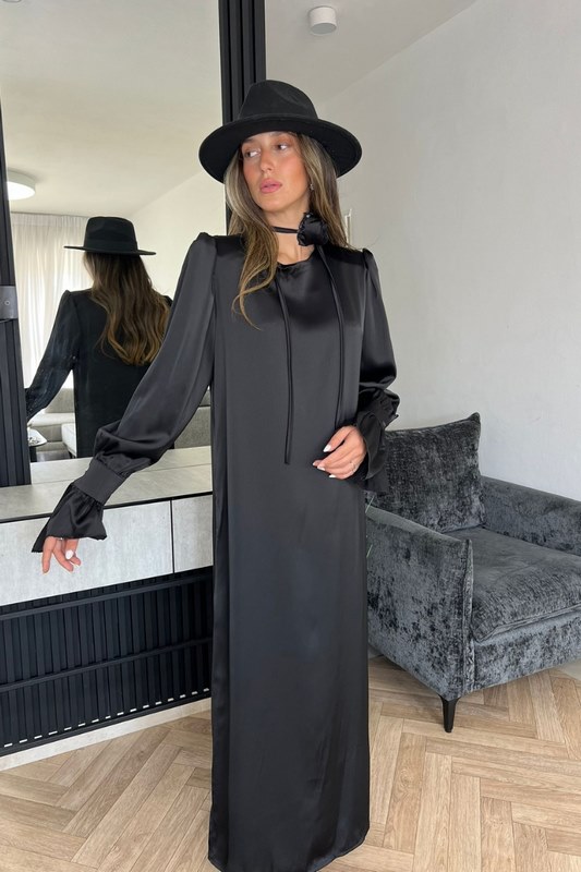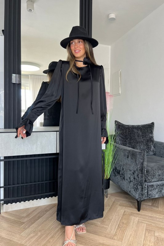 דף הבית  / מוצרים / New collection / שמלת מקסי סאטן דגם ארין שחור