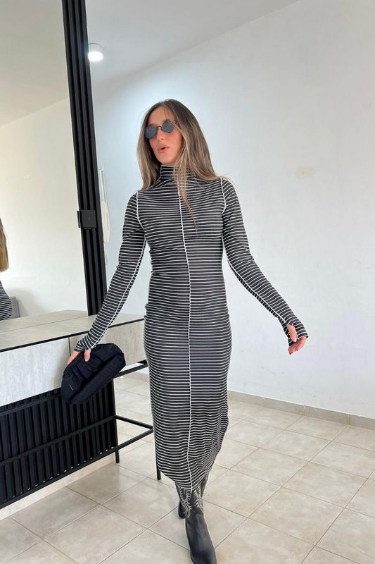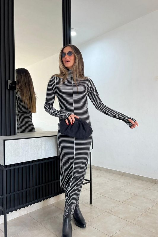 שמלת נופר פסים שחור