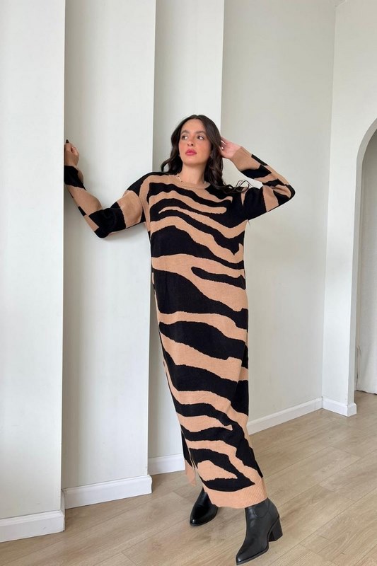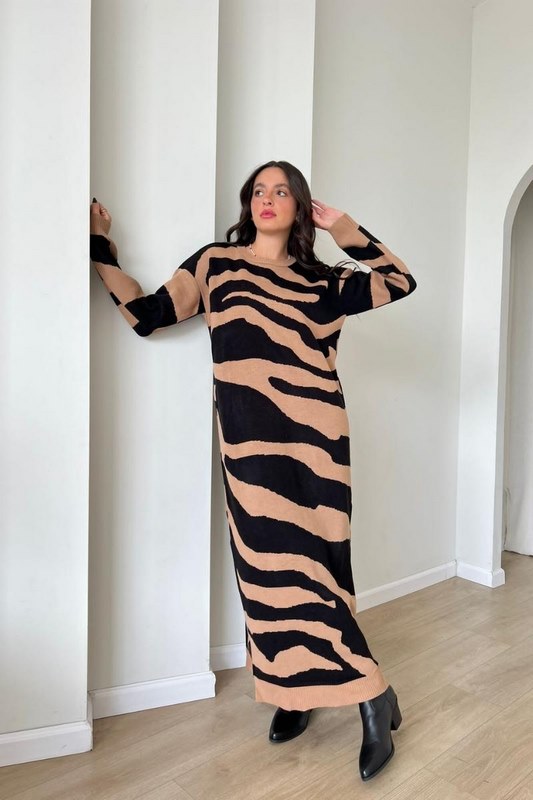 שמלת סריג זברה שחור חום