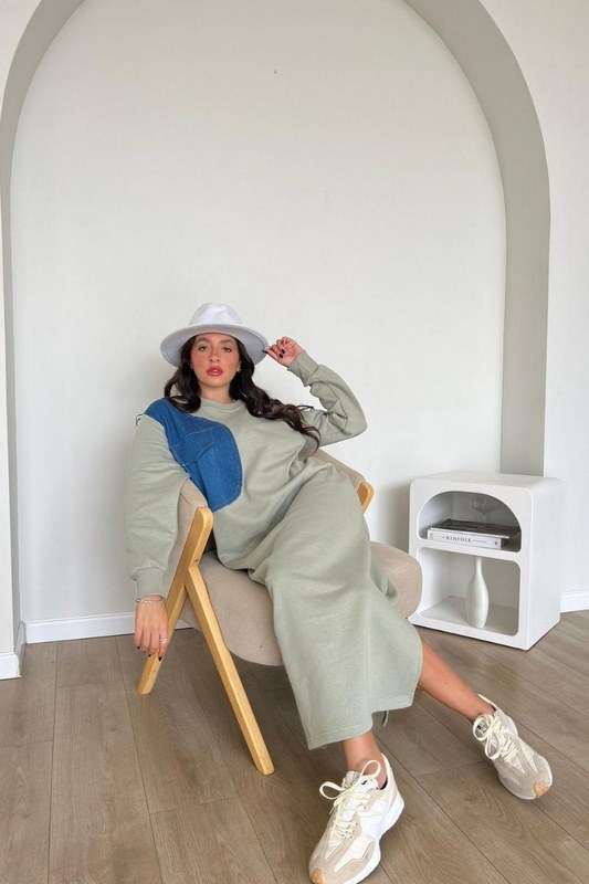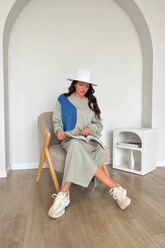 שמלת פוטר שילוב גינס ירוק זית