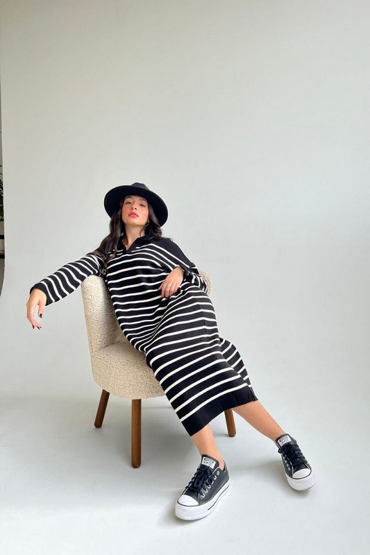 שמלת פסים דגם שובל שחור